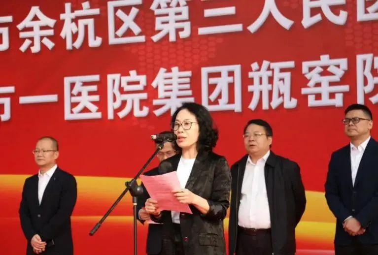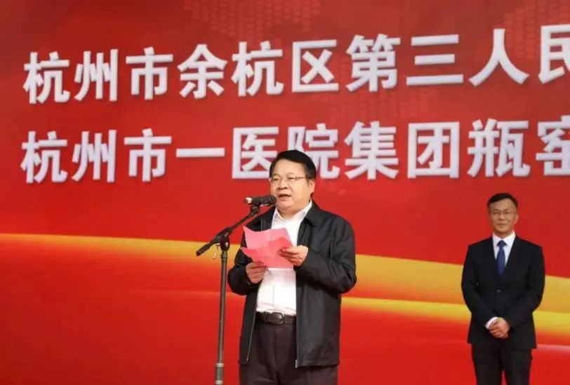 余杭区区委副书记、区长陈如根作重要讲话。他强调余杭区委区政府坚决贯彻以人民为中心的发展理念,把健康余杭建设作为民生领域的重要工作,大力推进医疗卫生体制改革和卫生健康领域重点项目建设。今天,新院区的启用必将是333体育 瓶窑院区(余杭三院)发展史上的里程碑,希望余杭三院能珍惜机遇,最大程度改善余杭西部人民群众的就医条件,带动全区医疗卫生事业建设再上新台阶。