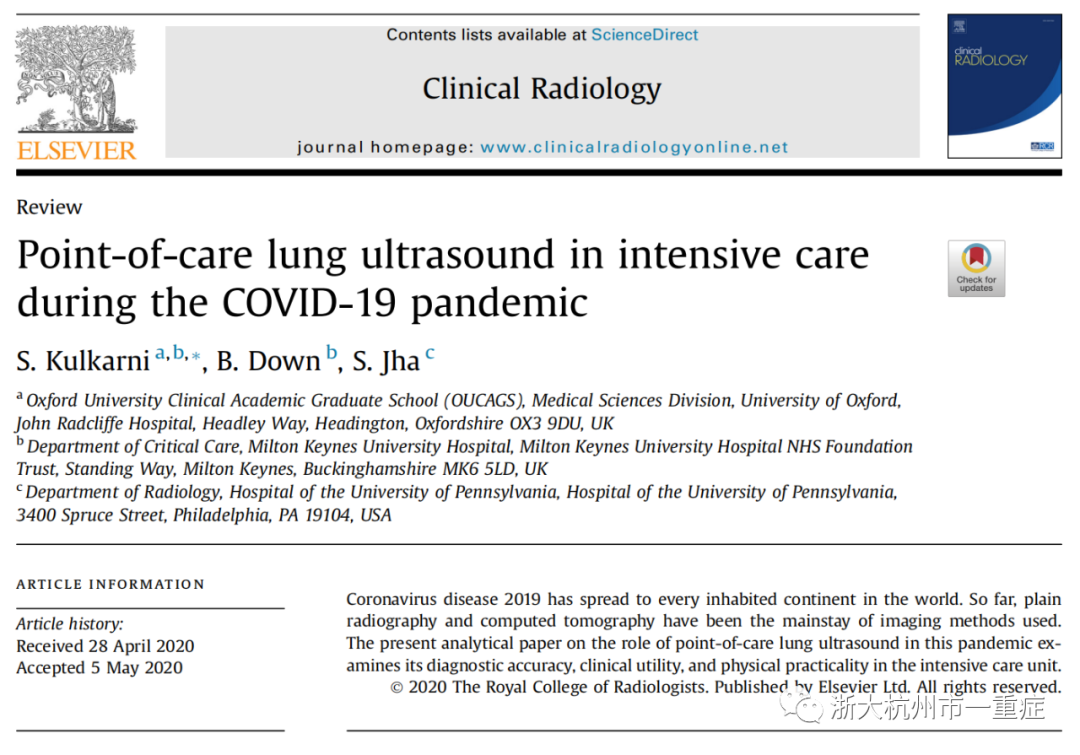 关于COVID-19康复患者超声评估的文献很少。Peng等指出治疗后A线重新出现。其再现表明间质浸润减少。在COVID-19爆发前,超声已用于重症监护,以评估治疗反应和预后。在临床试验中,Bouhemad等指出POCUS可以在呼气末正压(PEEP)诱导的肺复张中调整呼吸机设置。Haddam等表明POCUS能够监测俯卧位通气期间的通气情况,而然它无法预测氧合反应。最后,肺部超声评分是对非心源性肺水肿的定量测量,能够量化疾病的严重程度,并预测ICU通气患者ARDS的发生。有理由认为这些发现在COVID患者中也是正确的,其POCUS发现与其他形式的肺炎相似。