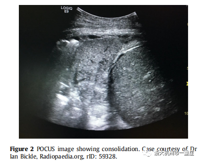 ICU患者缺氧的原因很多。鉴别病因十分重要,因为这可以使治疗正确。本综述将举例说明以证明利用POCUS来区分ARDS和胸腔积液的优势。胸腔积液在胸部X线上显示为白色,这与实变难以鉴别。此外,胸片很难检测到<500ml的积液。对于平卧位通气的ICU患者,由于倚靠的原因,将更难检测到液体。这些因素导致通过胸部X线诊断胸腔积液的准确率为47%(敏感度39%,特异性85%)。相反,胸腔积液作为内脏与胸膜壁层间的无回声矩形区域,POCUS对其诊断准确率为93%(敏感度92%,特异性93%),优于胸部X线和听诊(准确率61%;敏感度42%,特异性90%)。胸腔积液在COVID-19中很少见。因此,它的存在可能表明应该考虑另一种诊断,例如细菌性肺炎或充血性心力衰竭。