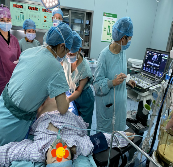 麻醉医生给“准妈妈”打硬膜外麻醉、B超医生查看胎位情况、婴儿润肤油涂抹腹部……10月8日下午15时39分,在超声科医生的保驾护航下,“臀位”外倒转术正式开始。