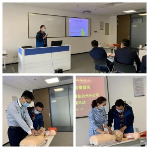 我院急诊科医生谢赟为与会人员进行了急救知识培训,生动讲解了救护的基本知识,并通过现场手把手演示心肺复苏,让厦航的同志们有了亲身体验,从而让地面服务保障人员能够更好的在突发事件中做一些力所能及的紧急处理。