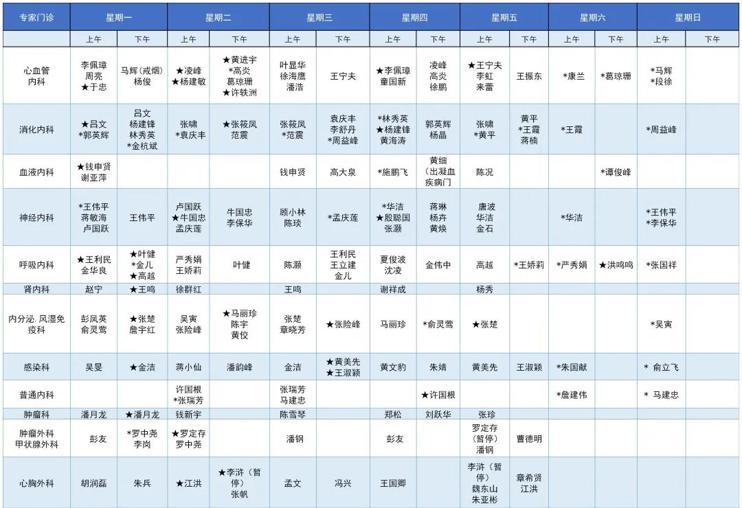 注:本专家门诊表仅供参考,最终以门诊挂号为准。