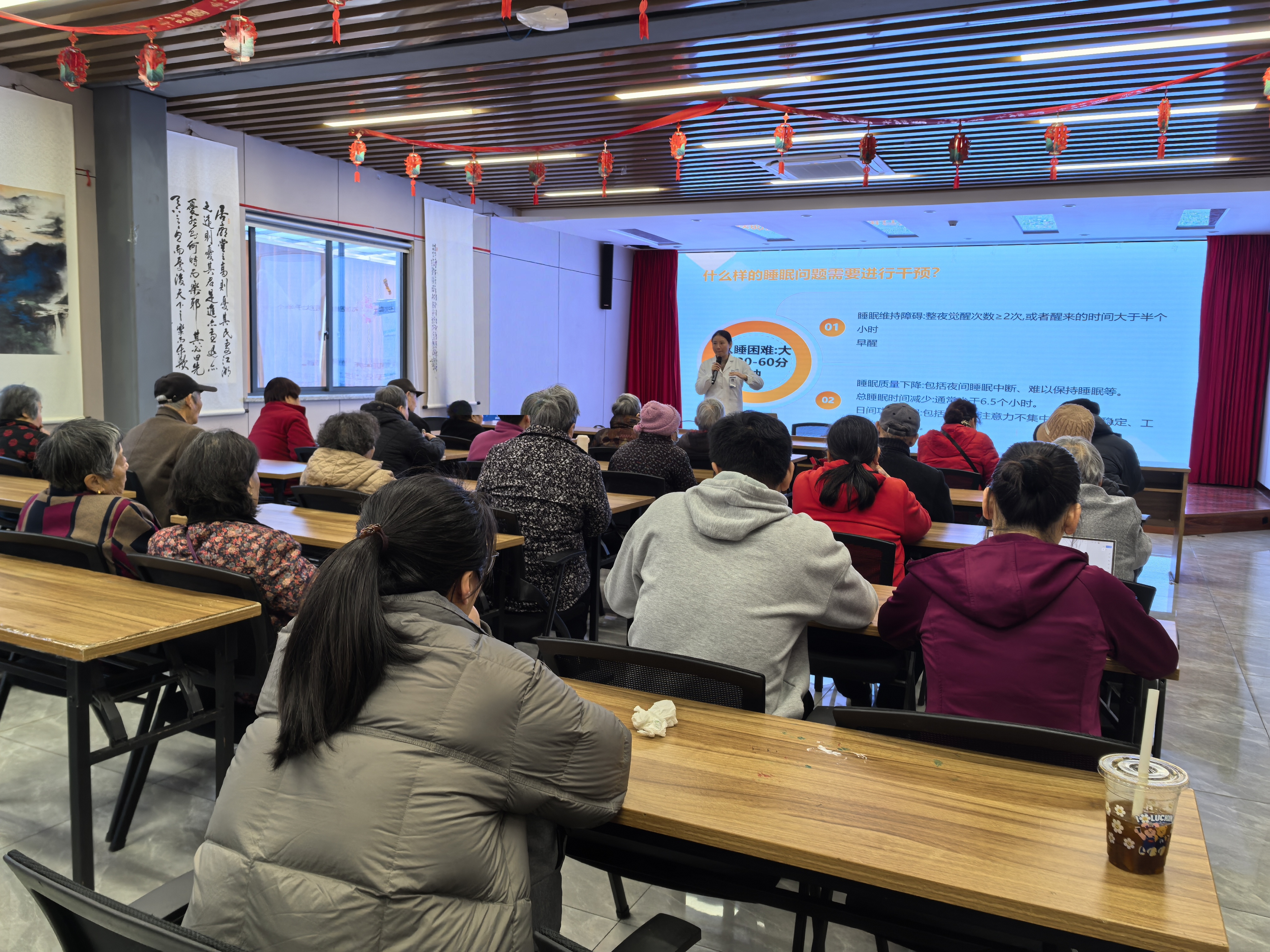 3.21号当天,义诊团队还来到紫阳的党群服务中心,在这里由临床心理科副主任医师章瑜带来的公益科普讲课“睡个好觉,拥抱健康生活”,吸引了众多居民的参与。章瑜医师深入浅出地讲解了睡眠的科学知识,针对现场参与活动的中老年人群,讲述了如何养成良好睡眠习惯,以及常见睡眠问题的预防和处理等,现场互动热烈,居民纷纷表示“通过讲座,了解很多保持良好睡眠的小技巧”。