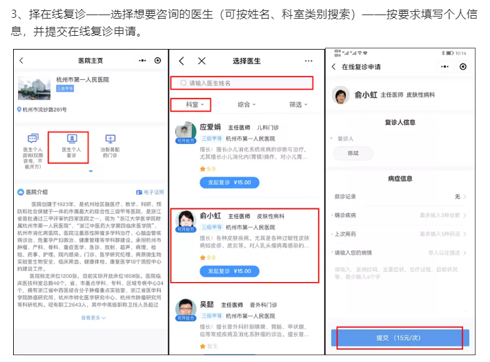 看过来看过来,互联网333体育 已在杭州333体育 微信公众号上正式上线了。只要有网络有手机的地方,让您足不出户,随时可以用市医保卡或自费卡在线求医复诊:在线咨询、在线复诊、在线配药、在线预约检验检查等,需要治疗的药品会通过物流送到家,杭州地区免费配送哦。疫情中为您雪中送炭。
