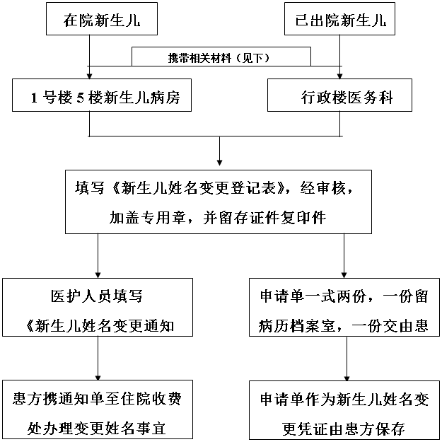 4、患方携带《新生儿姓名变更通知单》至住院处,由住院处协助办理新生儿姓名变更事宜。