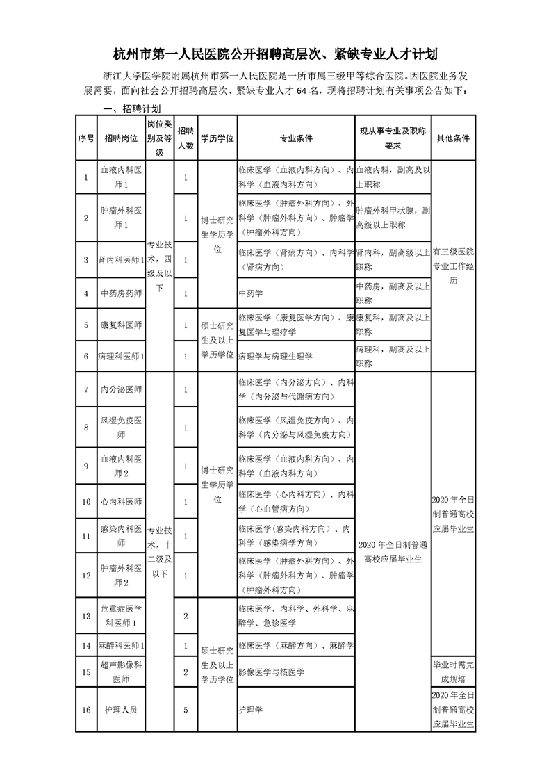 浙大医学院附属333体育(中国)官方网站 2020年上半年高层次、紧缺专业招聘预报名通知