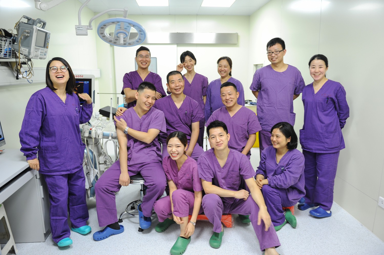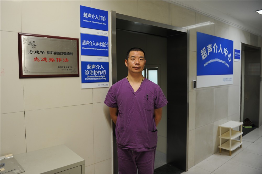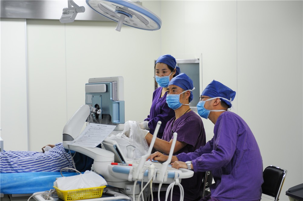 我院超声科自上世纪九十年代始就开始超声引导下的介入治疗,为省内最早开展超声介入诊治的单位之一。目前我院超声介入中心拥有主任医师2位,副主任医师3位,主治医师3位,住院医师2位,护士2位,医士1位,人员配备完善。经过二十年的发展,由当初年完成几十例介入手术到现在年完成介入手术8000余例,介入手术总量大幅提升,诊疗项目不断扩展,涵盖所有超声介入领域的手术类型,成为浙江省超声介入的第一梯队,在国内也有一定的知名度。开展的手术范围包括:良性前列腺增生激光消融;甲状腺肿瘤射频、微波、激光消融;肺部小结节的穿刺诊断与热消融治疗;肝脏、肾、转移性淋巴结肿瘤的消融治疗;重症胰腺炎导致的腹腔及后腹膜脓肿置管引流:肝、肾、附件囊肿的抽液治疗及术后并发症处理等。