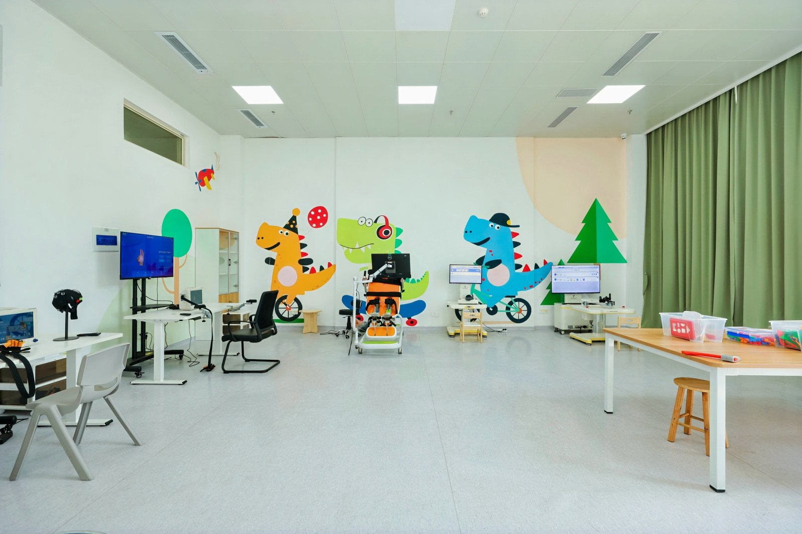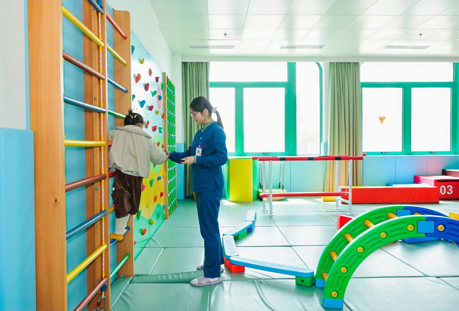 儿童康复中心是市级“听力语言障碍”、“智力障碍”、“肢体(脑瘫)障碍”、“孤独症谱系障碍”儿童定点康复机构。中心以“6P:精准诊断(Precision Diagnosis)、个性治疗(Personalized Therapy)、专业团队(Professional Team Building)、积极影响(Positive Impact)、卓越声誉(Preeminent Reputation)、合作协作(Partnership and Collaboration)”为核心理念,致力于打造符合儿童发展特点的规范化康复体系。采用“医康教”结合模式,主要为特殊儿童(包括听力言语、肢体、智力障碍、孤独症、发育迟缓、注意缺陷多动障碍、构音障碍、学习障碍以及脊柱侧弯等)提供康复治疗和特殊教育。利用独特的地理位置优势,与杭州文汇学校共建康教一体化幼儿班,开设0-3岁的特殊儿童托育班,建设康育融合健康管理中心,发挥医疗、教育专业机构优势,为特殊儿童带来真正意义上的“医康教”三位一体的融合式康复服务。 儿童康复科病房专注多学科协作与个体化干预,针对神经系统疾病、肌骨问题及罕见病(如脊髓肌萎缩症),提供从功能评定、游戏化训练到家庭支持的闭环服务。通过高危儿早期干预、家长赋能课程及“筛查-转诊-康复”绿色通道,收治范围涵盖神经系统疾病(脑瘫、脑损伤、脊髓损伤)、肌肉骨骼问题(脊柱侧弯、骨折术后)、发育迟缓(语言发育迟缓、运动发育迟缓)、遗传代谢性疾病(脊髓肌萎缩)以及行为障碍(孤独症谱系障碍、注意缺陷多动障碍)等,服务对象主要为病情稳定、需持续康复的儿童至18岁青少年,部分延伸至脑瘫青年过渡期,守护特殊群体重返社会。
