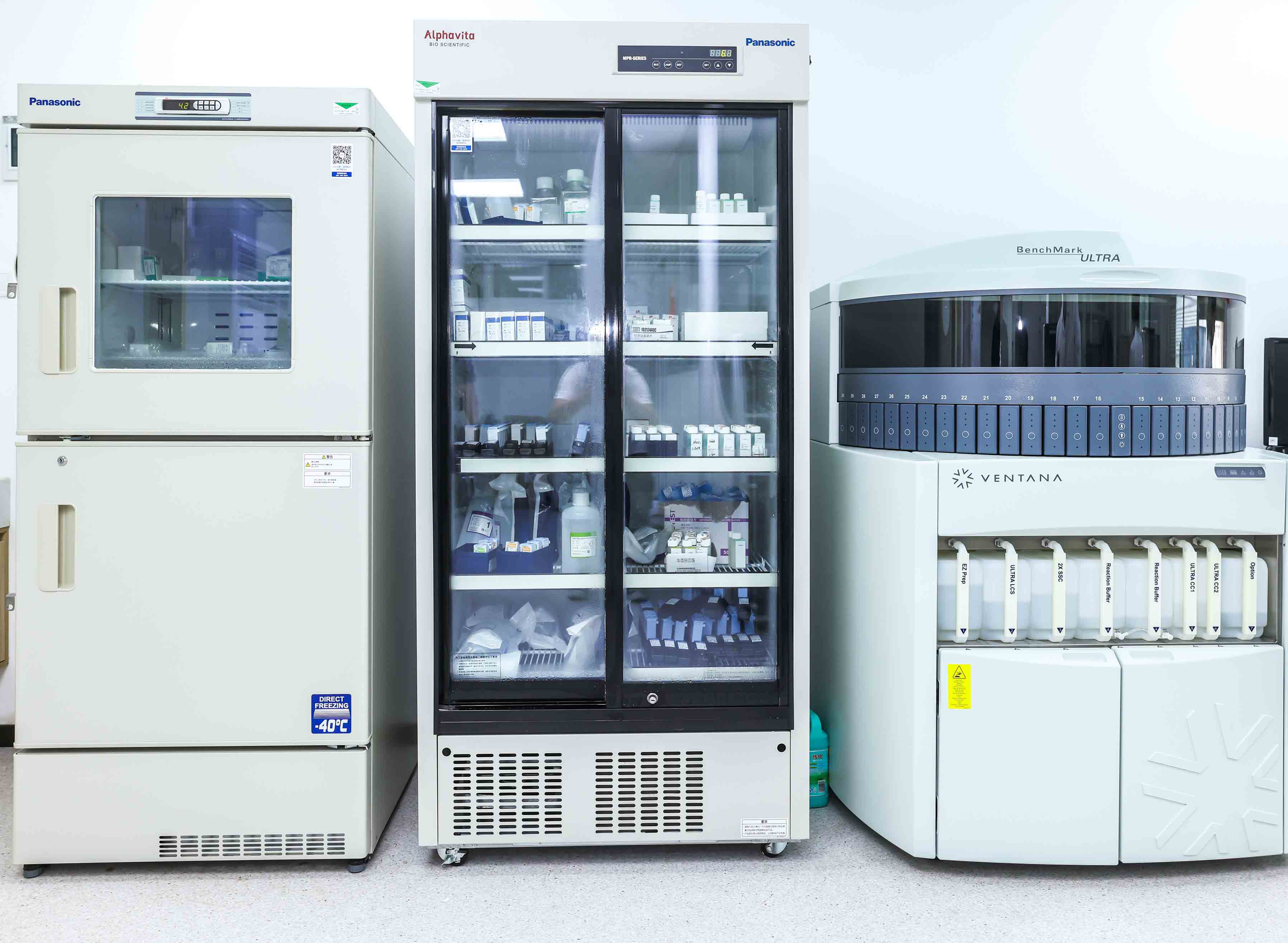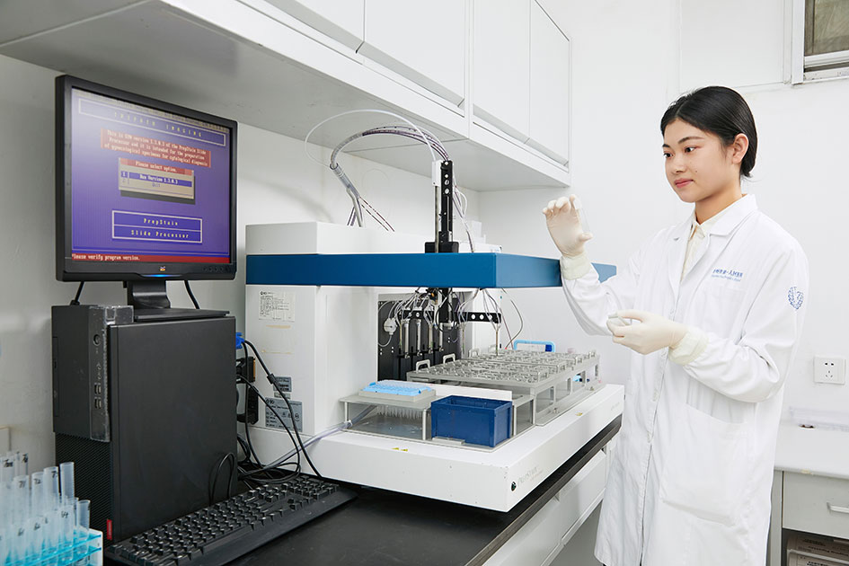 1987年成立免疫病理实验室,配备有百余种抗体,检测癌基因、激素受体、耐药基因、错配修复基因等;常规开展Her-2/neu基因FISH检测,HPV和EB病毒原位杂交检测等。。