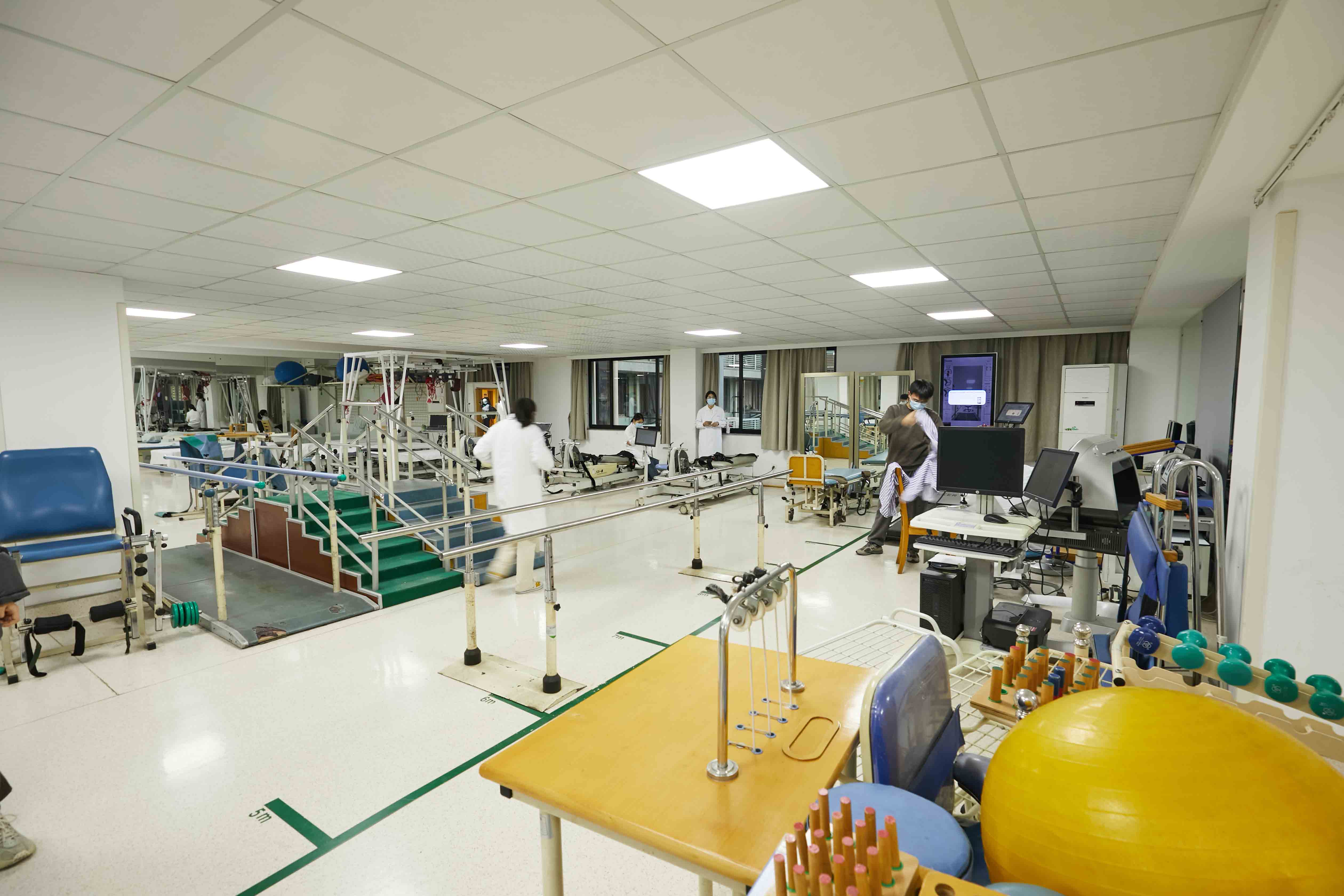康复物理治疗设备仪器先进、齐全,拥有各种声、光、电、磁、冷、热传 统的物理因子治疗设备,包括超声波治疗仪、立体动态干扰电、肌电生物反馈、 大功率半导体激光仪、氦氖激光治疗仪、磁振热疗仪、经颅磁刺激仪、体外冲击 波治疗仪、蜡疗、中药薰药仪等。以及现代PT、OT、ST、康复工程、评估设备, 包括进口减重步态训练器、多体位升降治疗床、Bobath治疗床、电动起立床、 吞咽与言语功能治疗仪、关节肌力训练器、平衡功能训练器、颈椎牵引仪、腰椎 牵引仪、电脑多关节拉力器等康复设备。配备意大利三维步态分析系统、意大利 动静态平衡评估与训练系统、手功能康复机器人、上下肢机器人、脊柱评估与训 练系统、认知康复训练系统、智能化运动分析和训练系统、虚拟情景互动训练系 统、肌电与生物反馈训练系统、SET悬吊系统等。